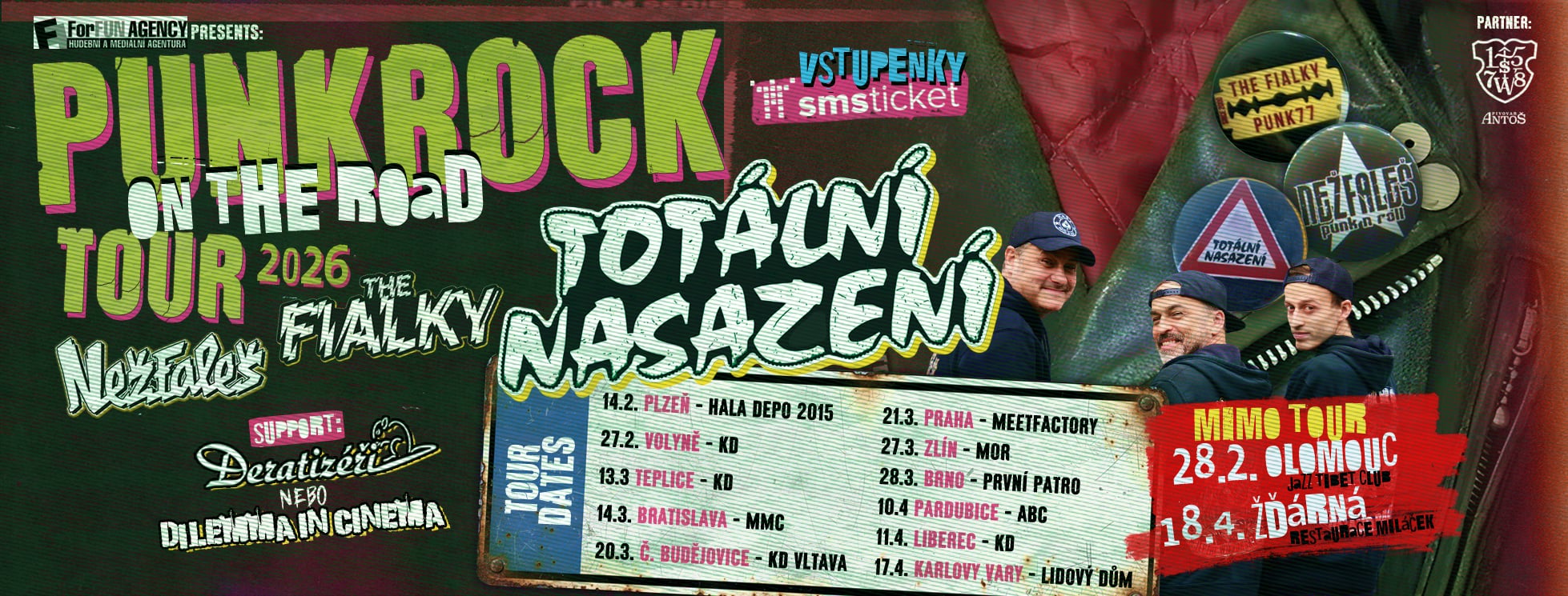 | 7.2.2026 Kladno Auto Da Fe 14.2.2026 Plzeň Depo Nežfaleš,The Fialky,TN 20.3.2026 České Budějovice KD Vltava Nežfaleš,The Fialky,TN 21.3.2026 Praha Meet Factory Nežfaleš,The Filaky,TN 10.4.2026 Pardubice ABC Nežfaleš,The Fialky,TN 11.4.2026 Liberec KD Nežfaleš,The Fialky,TN 12.9.2026 Praha Modrá Vopice OO8 |